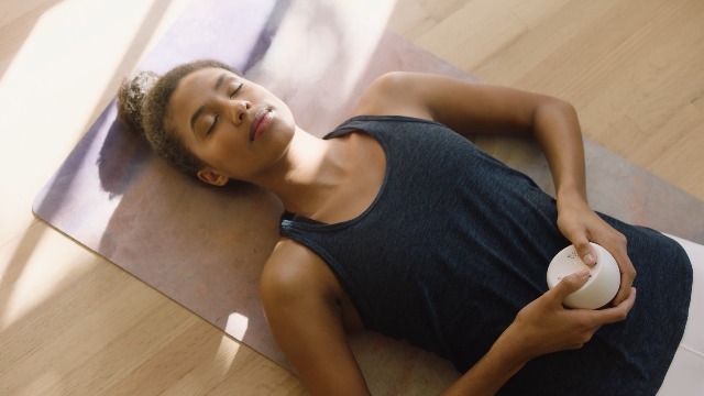 Vibrations guide focus and breathing (inhale – hold – exhale) alongside audio from the app